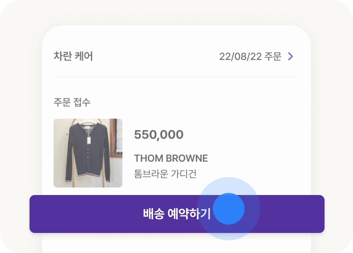 상품이 판매 됐다면, 차란 앱에서 간편하게 배송 예약을 끝내세요. 번거롭게 편의점이나 우체국에 방문할 필요가 없어요.