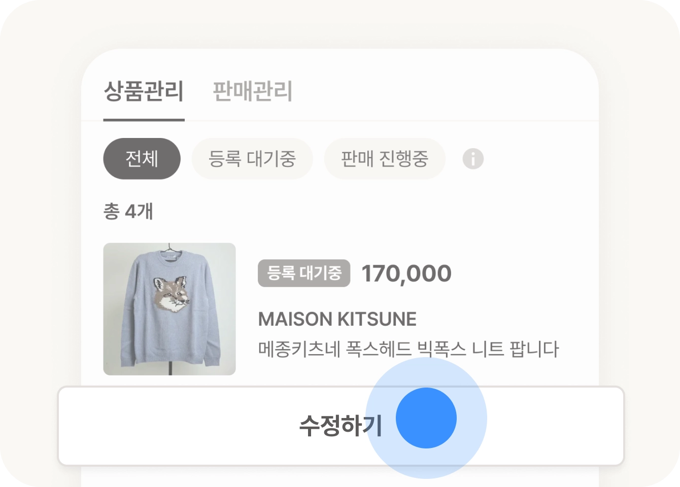 상품 정보를 수정하고 싶거나 판매를 중단하고 싶다면, ‘수정하기' 버튼을 눌러서 진행해 주세요.