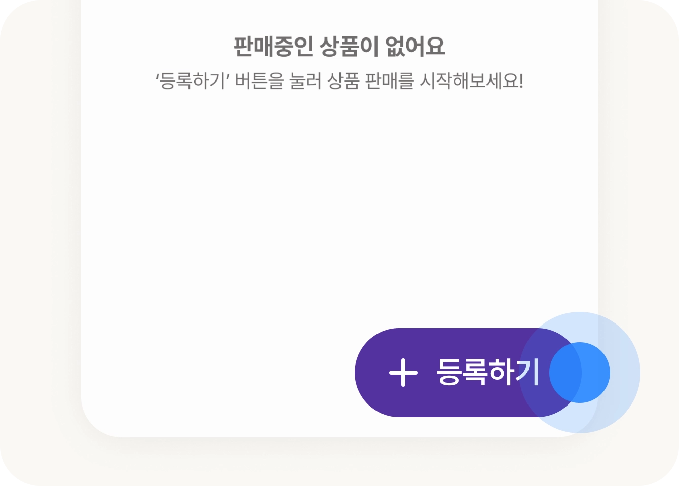 상품 판매를 시작하시려면, 마켓의 상품관리 화면에서 ‘등록하기'를 눌러 상품을 등록해 주세요.