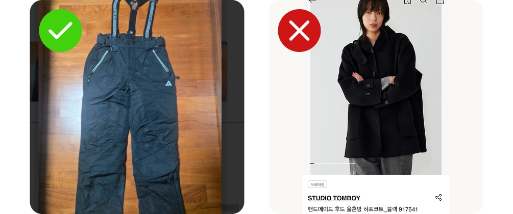 과도한 보정이나 필터로 인해 상품 상태를 확인하기 어려운 경우, 게시글 등록이 제한될 수 있습니다.